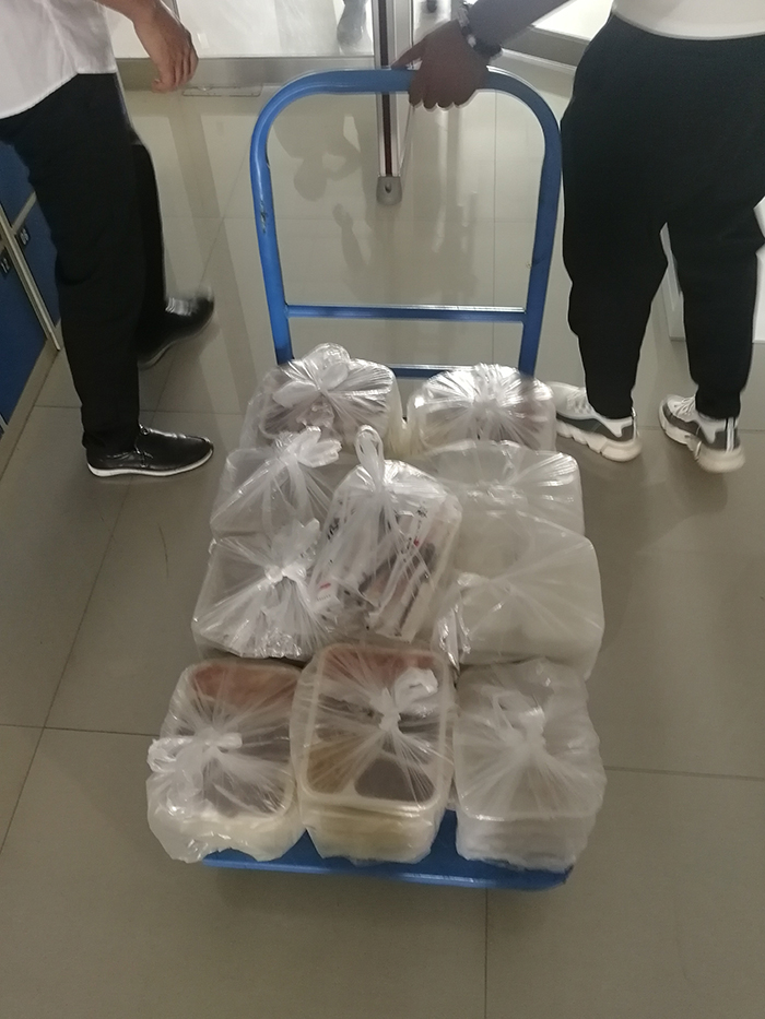 中午吃的是“大”餐,大到得用小推車來拉,盒飯當(dāng)然比不上山珍海味,但是想到這是對自己一天的努力和堅持的犒勞,頓時感覺幸福和滿足。