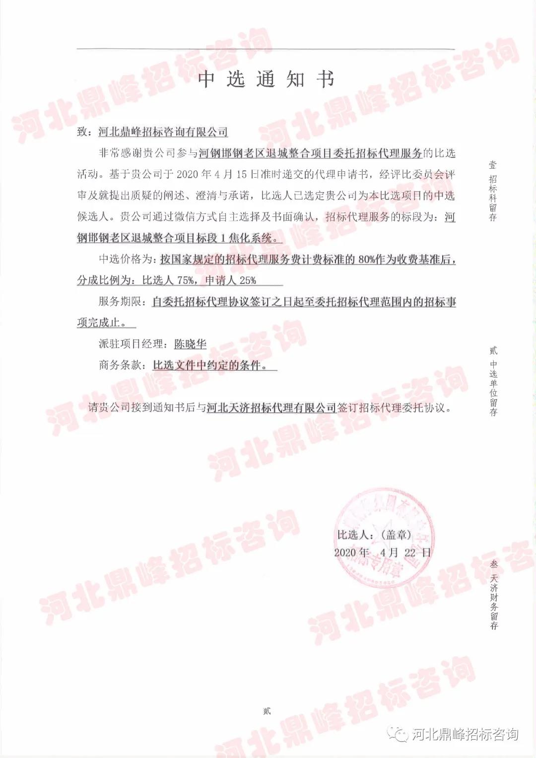 近期,河北鼎峰招標(biāo)咨詢有限公司在參與河鋼邯鋼老區(qū)退城整合項(xiàng)目委托招標(biāo)代理服務(wù)比選活動(dòng)中成功中選,中選標(biāo)段為:河鋼邯鋼老區(qū)退城整合項(xiàng)目標(biāo)段1焦化系統(tǒng)。