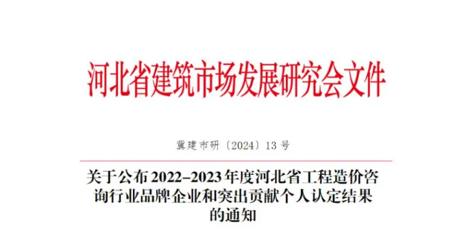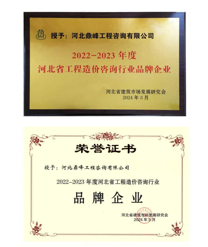 鼎峰榮譽(yù)丨河北鼎峰榮獲“2022-2023年度河北省工程造價(jià)咨詢行業(yè)品牌企業(yè)”稱號