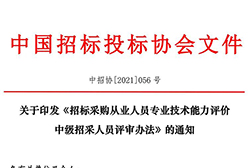 • 按照招標采購從業(yè)人員專業(yè)技術(shù)能力評價工作安排,中國招標投標協(xié)會(以下簡稱“中招協(xié)”)將于今年10月16日-17日在全國范圍內(nèi)舉辦2021年中級招采人員測試。